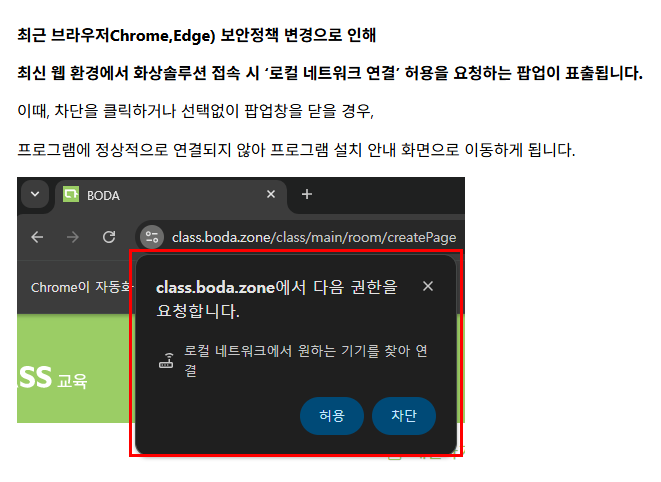 최신 브라우저 보안정책 변경으로 인한 강의실 입장안내